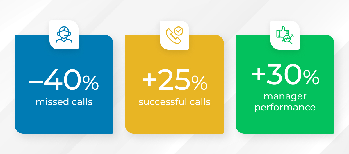 Auto-dialing allowed managers to focus on conversations rather than manually dialing numbers. Now, the operator only connects when the customer picks up the phone. This has increased the number of successful contacts by 30%.